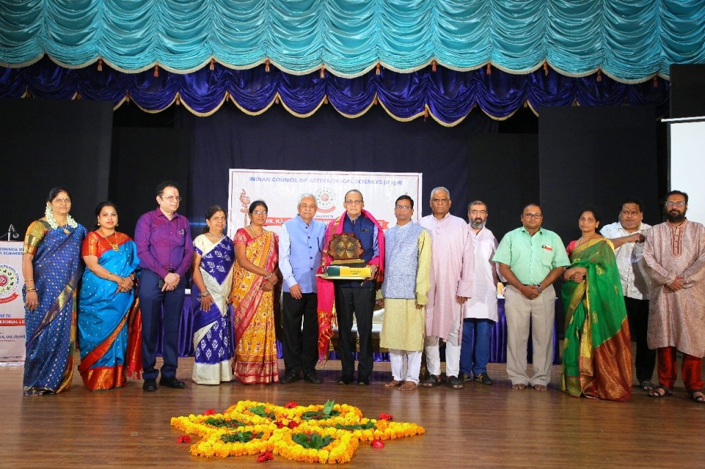 Venue: Bharatiya Vidya Bhavan, King Koti, Hyderabad The Secunderabad Chapters of the Indian Council of Astrological Sciences (ICAS) recently organized a solemn event in memory of the esteemed Dr K L Manohar at Bharatiya Vidya Bhavan, King Koti, Hyderabad. The event was inaugurated by the Honourable National President, Prof. Arya Bhushan Shukla, along with Dr M Anjaneylulu, National Sr. Vice President, Shri E Rajendran, National Vice President, Shri Jeyaram, former National Vice President, and Dr Vani Vinod, Dy. Controller of Examinations. The ceremony commenced with the lighting of the traditional lamp and Vedic prayers, setting a spiritual tone for the evening.