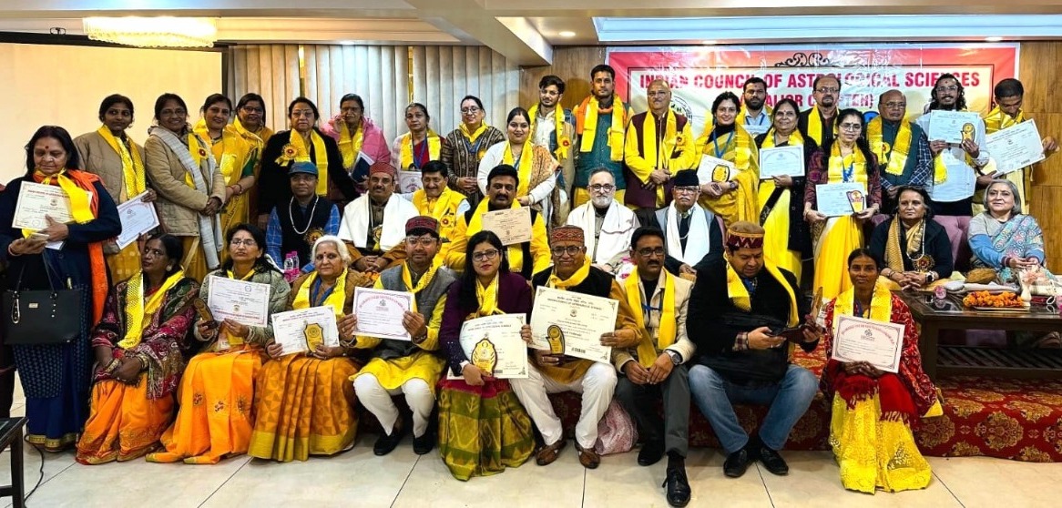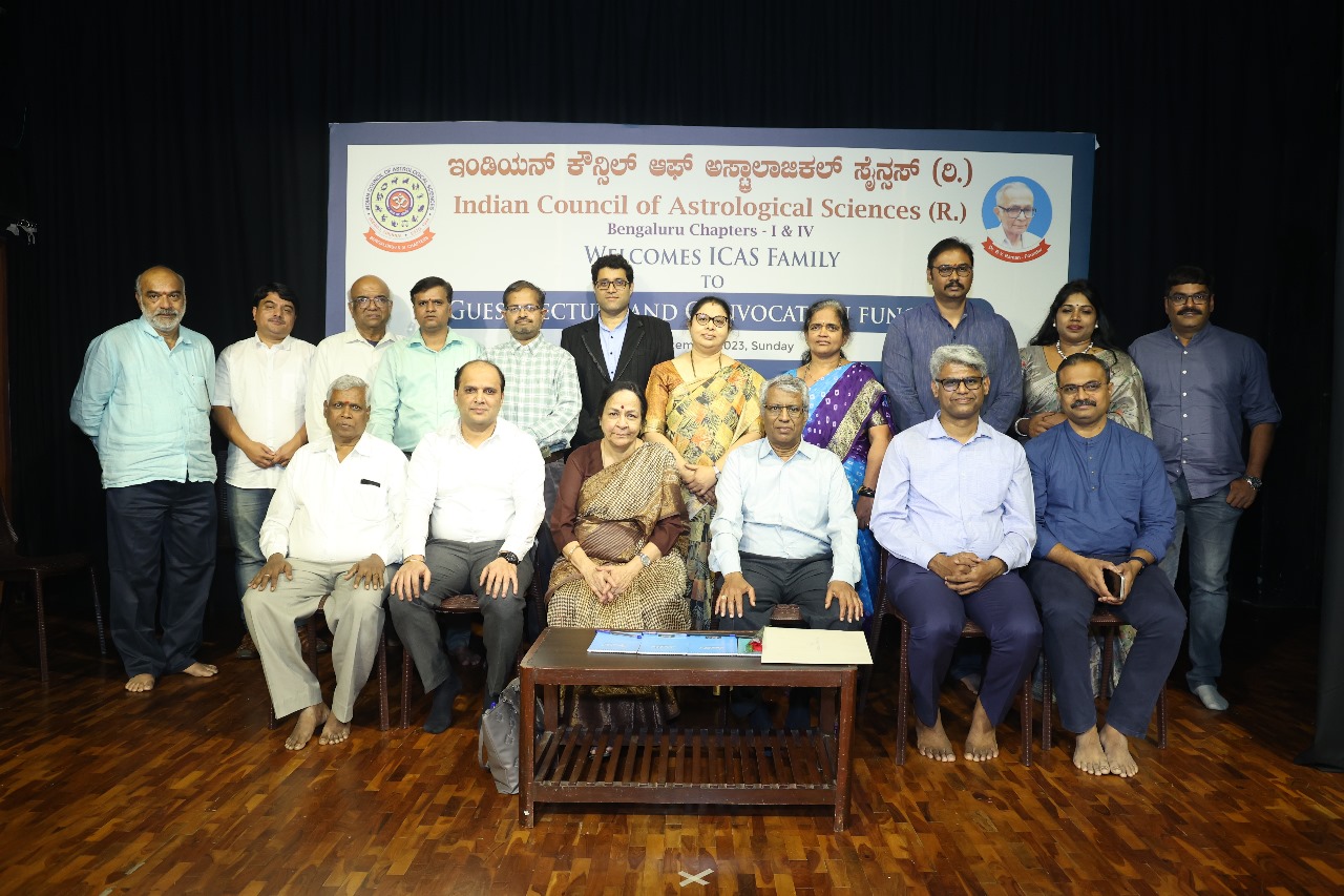 The Bangalore Chapters 1 and IV of the Indian Council of Astrological Sciences (Regd.) jointly organized the Convocation to distribute certificates to students successful in the Jyotisha, Nadi, Vastu and Hasta Rekha courses of ICAS on December 31, 2023 at Shukra Auditorium, Malleswaram, Bangalore.